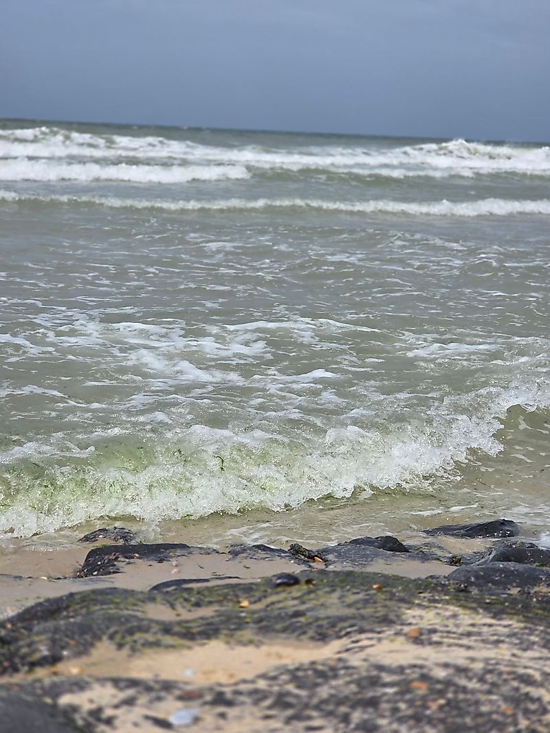 Mit nackten Füßen bin ich am Strand. Im Wasser, auf Sand und auf Steinen.