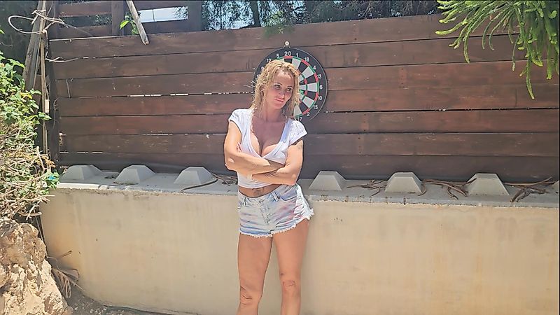 Ich habe mit meinem Nachbar Dart gespielt und ausgemacht war, wer gewinnt darf aussuchen, was wir heute machen. Meine Dartpfeile hatten nicht gehalten, und deswegen habe ich verloren. Und ich fass es nicht, er meinte er will mich f****n, echt frech. Aber ok es war so ausgemacht.
