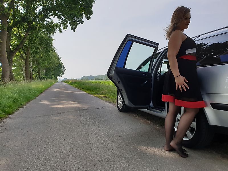Eigentlich wollte ich nur ein bisschen mit dem Auto durch die Gegend fahren. Plötzlich landete ich dann mi***n im Nirgendwo und war dazu einfach nur geil. Ich musste es mir einfach sofort heiß besorgen, auch wenn es beinah anfing zu regnen. Ich hatte sowieso nichts drunter und meine halterlosen Strümpfe wie immer an. Und da hatte ich zudem genau das richtige für meine feuchte P***y parat.