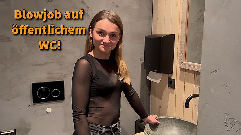 Warum vergesse ich eigentlich immer die Türe abzuschließen? Plötzlich habe ich Besuch auf einem öffentlichen WC. Naja was soll's, wenn er einmal da ist, kann ich ihn doch auch gleich geil b****n, bis er mir das ganze Gesicht voll kleistert!