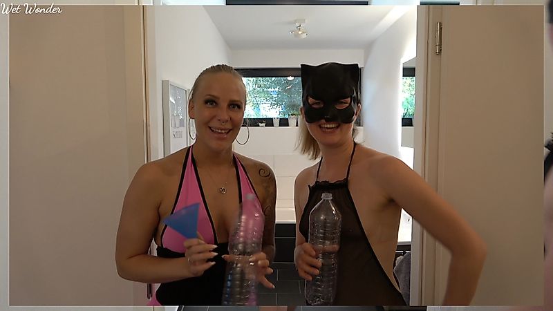 Heute bin ich zu Besuch bei meiner Freundin Lara. Wie ihr ja bereits bestimmt schon mitbekommen habt, machen wir beide ja sehr gerne den ein oder anderen Natursekt Clip. Da haben wir uns die Frage gestellt, wer von beiden wohl mehr durch einen Trichter in eine Flasche P**sen kann? Wir haben dazu beide die gleiche Menge Wasser getrunken und nach einer halben Stunde uns eine leere Flasche sowie einen Trichter genommen und dann mal los gelegt. Wer hatte jetzt am Ende mehr P**se in der leeren Flasche und hat somit die challenge gewonnen? Was meint ihr?