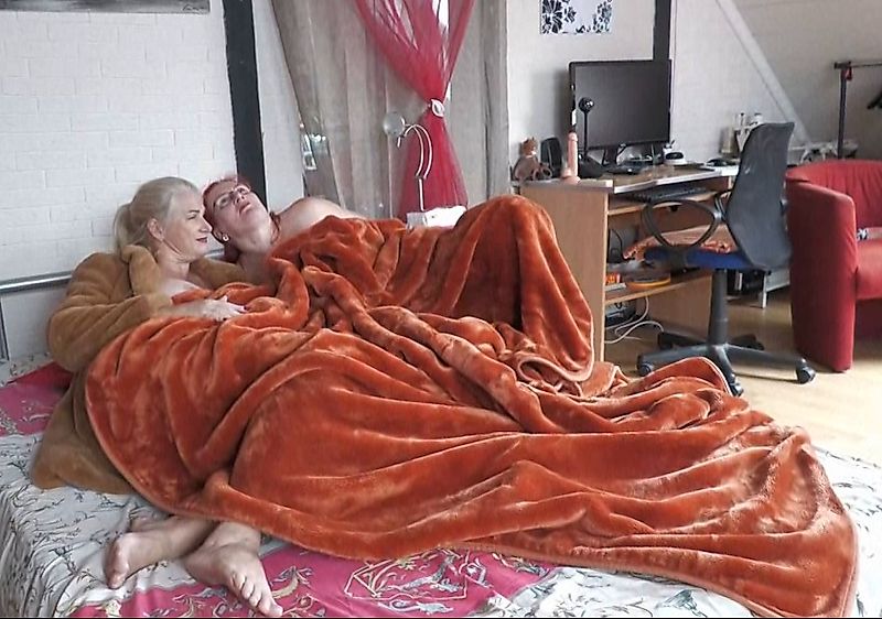 When my girlfriend visited me, I said to her, "Come on, you sexy vixen, let's cuddle," and she happily slipped under the soft blankets next to me.