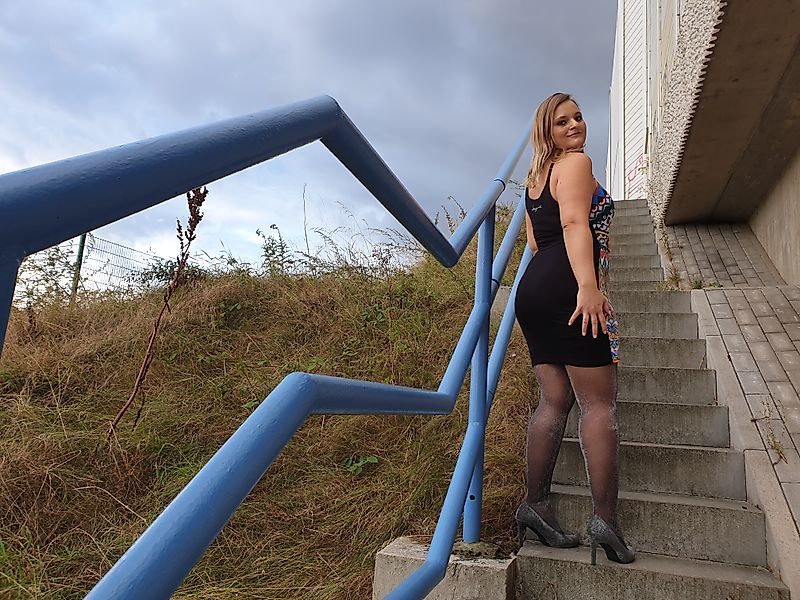 Exciting adventures are totally my thing!!! With this hot weather, you have to drink lots of water. I did that and then wanted to have a really great pee. At the same time, I also wanted to try something new. So, wearing a summer dress and nylons, I knelt down on some stone steps outside and just let the stream flow freely from my pussy. The pee ran beautifully down the steps! Really thrilling!!