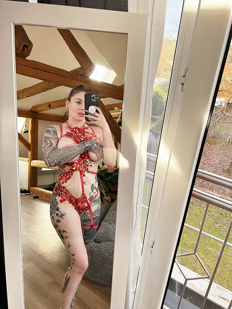 Happy New Year, my love! In my red and gold glitter harness, I am your explosive firework. But be careful: don't burn yourself 🔥🤤💦