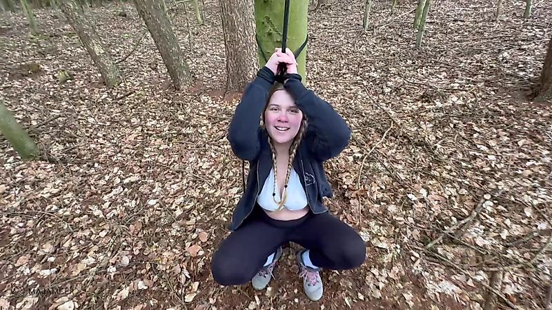 I have long fantasized about being tied to a tree in the forest, being completely at his mercy and being fucked hard by him. So many times I've worried myself with the thought of it in bed at night hihi. But when I was really tied to the tree in front of you, it felt so much hotter than in my daydreams. I enjoy every single second, my pussy is almost leaking with lust and I open my mouth for your hot cock! Oh yes, I want to be used by you here in this forest. Do what you want with me, I'm your good little S******e!! 😏