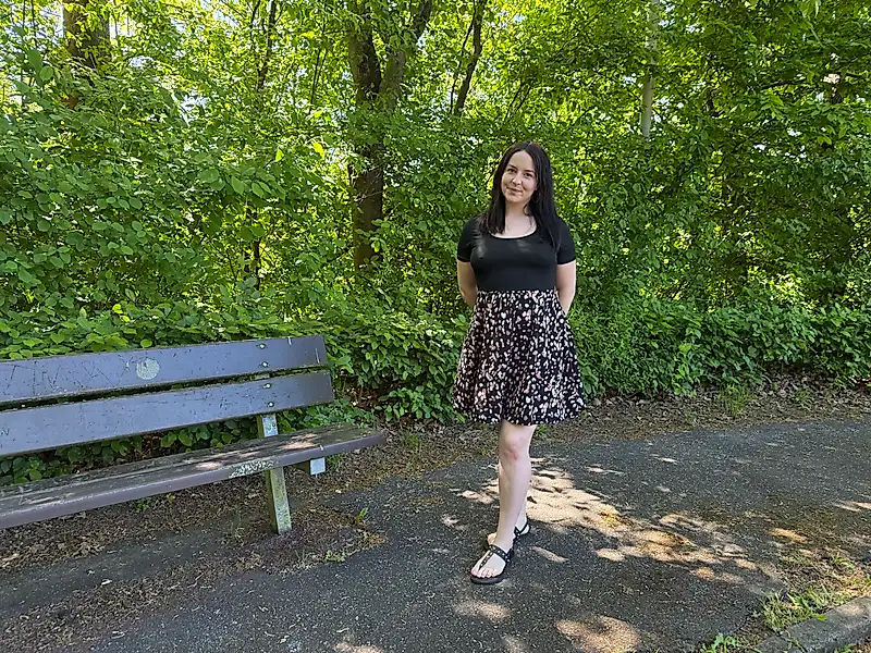Me encanta vagar por estacionamientos anónimos. Es bastante obvio lo que hago. Enseguida se me acerca un chico. Empezamos a enrollarnos enseguida, y me subo el vestido enseguida. ¡Llevo puesta la tanga que siempre uso cuando dejo que me follen desconocidos! Le hago una mamada y estoy deseando sentirlo dentro de mí. Me folla a cuatro patas sin condón ahí mismo en el banco, y luego lo cabalgo con fuerza. Le ruego que se corra en toda mi cara. ¡Semen blanco y caliente solo para mí! ¡Me encanta! ¿Eres la siguiente...?