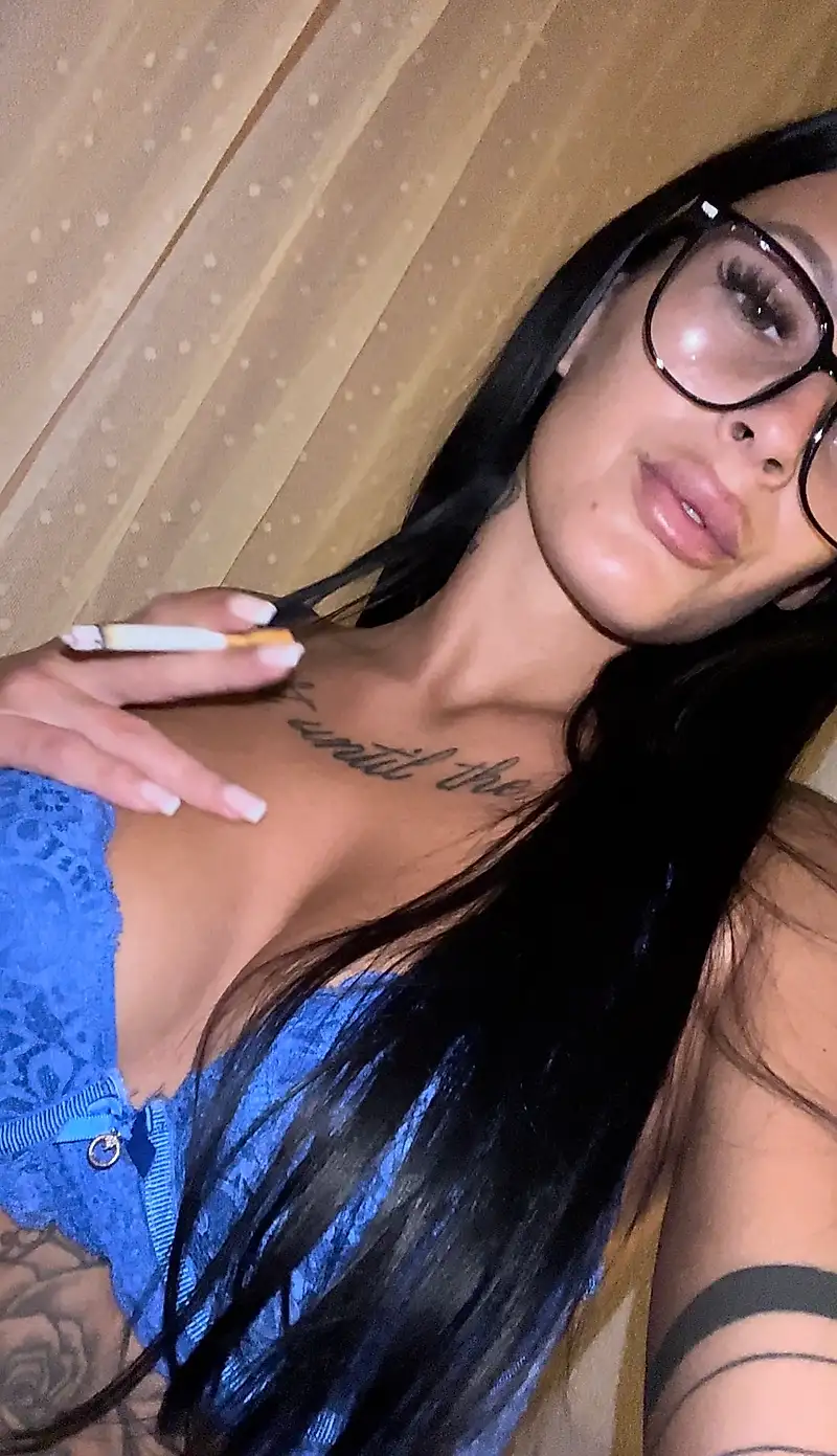 Estoy fumando un cigarrillo 🚬 mientras llevo mis gafas sexys y mi ropa interior azul 🔥💦 ¿Te gusta cuando las mujeres fuman? ❤️