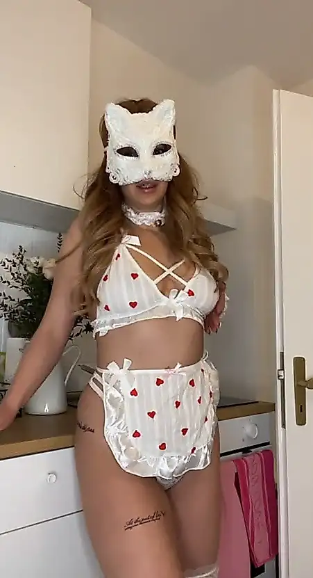 Solo quería cocinar algo con mi atuendo sexy. Pero como tenía la estufa encendida, cada vez sentía más calor. Bueno, ¿qué se le va a hacer? Dejé de cocinar y poco a poco empecé a tocarme y a quitarme la ropa. ¿Te hubiera gustado cocinar conmigo?