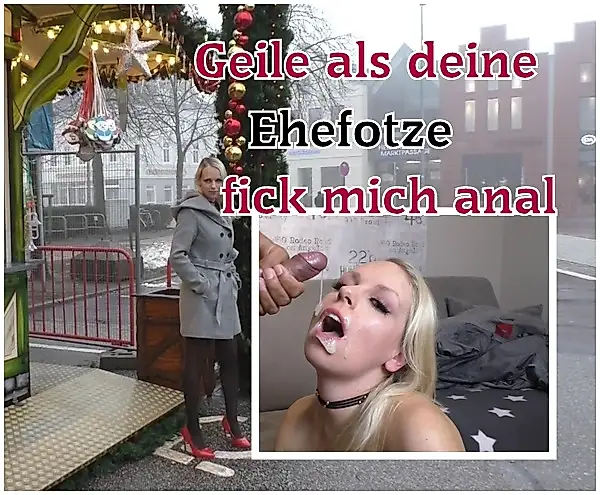 Estaba muy cachonda, no había tenido sexo en dos semanas, así que necesitaba algo de acción. Me puse un atuendo sexy y fui al pueblo, solo con un abrigo sobre la cabeza. Entonces me encontré con este tipo. Estaba con su exesposa. Le mostré cómo era, soy mucho más buena que su esposa. Grandes tetas, gran culo, coño apretado, estoy tan cachonda... Realmente lo necesito, vamos, dámelo, fóllame el culo, tu esposa no te dejará entrar ahí. Bien apretado en mi caliente, apretado culo y luego corre tu semen caliente por toda mi cara. ¿Tú también me follarías así?