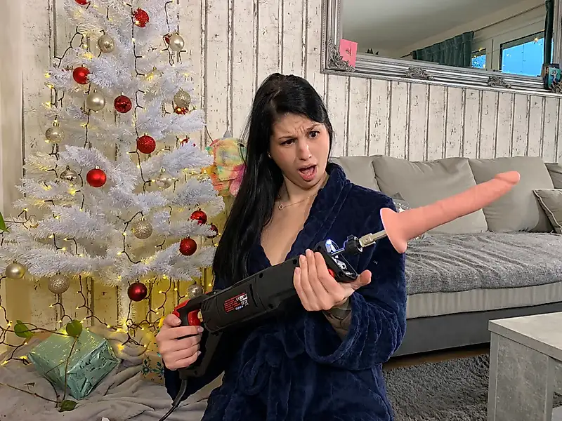 Esta máquina sexual supera a todas las demás. Ofrece hasta 2800 embestidas por minuto, brindándote un orgasmo de primer orden. No hay nada más intenso ni potente que esto. Este monstruo estaba debajo del árbol de Navidad, y al principio, no sabía qué hacer con una sierra recíproca. Pensé que era una broma, pero cuando desenvolví el dildo, me quedé completamente perpleja. Cuando las dos partes se unieron, me quedé sin palabras. Por supuesto, quise probarlo de inmediato, y fue realmente extremo. Nunca había experimentado nada tan intenso. Me penetró con fuerza y me corrí al instante. ¡La sensación es simplemente brutal e intensa!