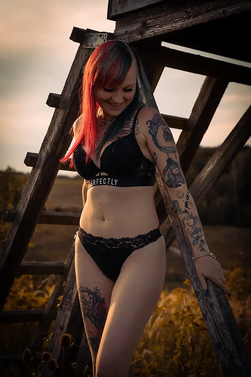 Estábamos en plena naturaleza y encontramos un lugar precioso para tomar unas fotos encantadoras para ustedes. La lencería y una puesta de sol son una combinación magnífica.