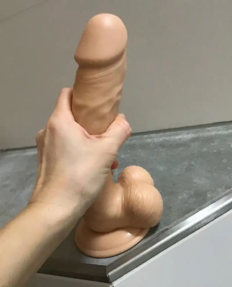 Ma chatte mouillée aspire le godemichet géant avec un bruit de claquement. Le tout en gros plan pour que tu puisses jouir dessus !