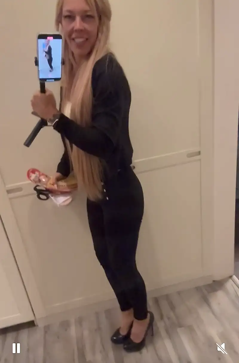 Encore en tenue de travail, à peine mes sacs de courses posés, mes mains glissèrent sur l'objet inattendu qui m'était tombé entre les mains. Quelque chose de lourd, de rond, de lisse et de prometteur… 40 cm de pur plaisir. À côté, de fines tranches de mortadelle, douces, délicates, presque comme de la soie. Un sourire malicieux aux lèvres, je me dirigeai vers la chambre. Chaque pas était un petit secret, chaque regard dans le miroir un jeu avec moi-même. Une fois sur le lit, je commençai à explorer ma nouvelle trouvaille avec mes sens – lentement, avec curiosité, presque avec révérence. Mes talons et mes vêtements glissèrent avidement sur mon corps. Un léger éclat, une douce chaleur – et soudain, mon corps se transforma en scène, paré, décoré, mis en scène. Les fines tranches collaient à ma peau comme faites pour un spectacle de séduction. Tout semblait exagéré, interdit, délicieusement fou – et précisément pour cette raison, si excitant. J'ai saisi son énorme bite naturelle de 40 cm, je l'ai prise si profondément dans ma bouche que ma salive a complètement inondé mon corps, mes seins et mon vagin… J'ai laissé cette énorme bite naturelle me baiser magnifiquement en levrette jusqu'à ce que je jouisse… tout mon corps couvert de jus d'amour et de ma propre salive chaude 🤤…