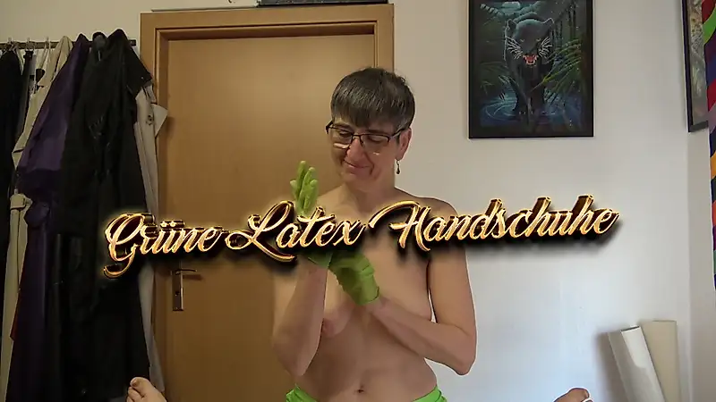 Il mio ragazzo impazzisce letteralmente quando mi presento davanti a lui con i guanti di lattice. Se ne sta sdraiato sul letto, rilassato. Ma quel relax non dura a lungo, e si eccita in un attimo. Così gli do quello che desidera: una bella masturbazione con le mani, ben oliate, con i guanti di lattice verdi.