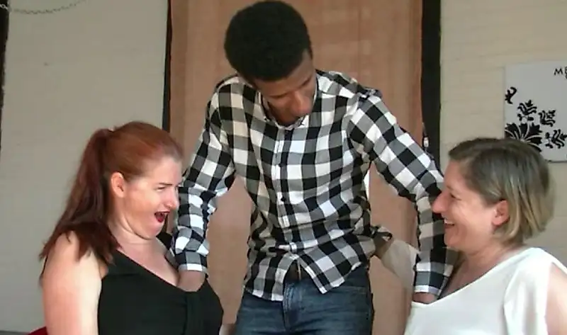 Моя девушка приехала в гости, поэтому я сразу же захотел показать ей своего милого курьера, ухмыльнулся, и мы тут же воспользовались случаем и соблазнили его.