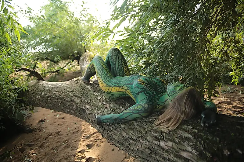 После более чем четырех часов неподвижного стояния мы поехали на пляж, и я смогла слиться с природой. Эта фантастическая роспись тела не только создавала эротические образы, но, на мой взгляд, стала настоящим шедевром. Даже многочисленные зеваки на пляже не могли оторвать от меня глаз. Позвольте себе быть очарованными, и я очарую вас... ваша DairyLena