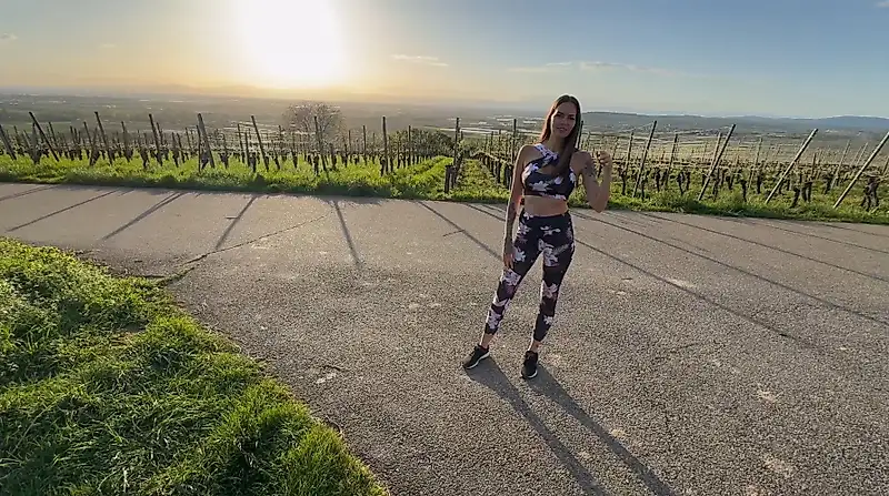Я обожаю заниматься спортом по вечерам на закате и бегать. Здесь, на природе, я всегда могу полностью расслабиться. Мой партнер по пробежкам, который часто со мной, сегодня не хотел бегать, но ждал меня в виноградниках, в моем любимом месте. Вау! Какое фантастическое место! Идеально для отдыха на свежем воздухе, правда? По вечерам здесь всегда очень многолюдно, но сегодня нас это не беспокоит. Мы оба невероятно возбуждены и просто не можем сдержаться... поэтому я послушно опускаюсь на колени прямо у дороги и сосу его член, пока он не станет твердым. Затем настает время получить свою награду за тренировку, не так ли? Я ложусь в багажник, спускаю спортивные леггинсы и играю со своей киской. Один мой вид сводит его с ума, и вскоре он засовывает свой член в меня. Он трахает меня очень хорошо, в миссионерской позе и по-собачьи, именно так, как мне больше всего нравится! Между делом я снова отсасываю ему член, потому что мне так не терпится попробовать на нём свою собственную сперму. Потом он снова трахает меня, и я стону, просто выплескивая всё удовольствие, не заботясь о том, услышит ли нас кто-нибудь. Это так сильно меня возбуждает, что я кончаю с силой. Теперь его очередь. Я прошу его, практически умоляю его излить свою горячую сперму глубоко внутрь меня. Ему не нужно просить дважды! Вау! Это был секс на природе, как раз в моём стиле!