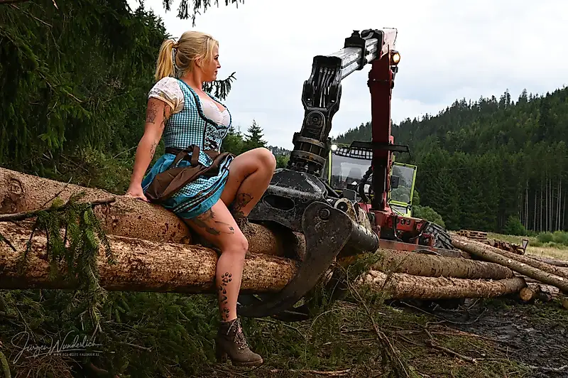 Но дирндль продержался недолго, и Дженни снова оказалась совершенно голой в лесу, извиваясь на стволах деревьев.